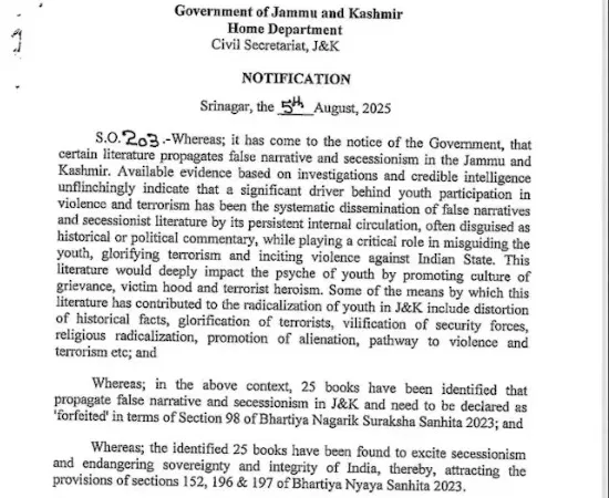 आदेश में आगे कहा गया है ऐसा साहित्य भारत के खिलाफ ‘युवाओं को गुमराह करने, आतंकवाद का महिमामंडन करने और हिंसा भड़काने’ में महत्वपूर्ण भूमिका निभाता है।