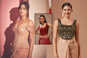 अगर आप फिटेड और स्ट्रक्चर्ड लुक चाहती हैं तो कॉर्सेट ब्लाउज़ आपके लिए परफेक्ट रहेगा। यह डिज़ाइन आपकी कमर को स्लीक और शेप में दिखाता है। पश्चिमी कॉर्सेट से इंस्पायर यह ब्लाउज़ लुक को रॉयल टच देता है। सिल्क या साटन फैब्रिक में बनाया गया कॉर्सेट ब्लाउज़ साड़ी या लहंगे दोनों के साथ शानदार लगता है।