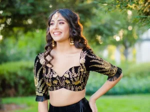 अगर आप कुछ बोल्ड और डिफरेंट ट्राय करना चाहती हैं तो क्रिस-क्रॉस बैक ब्लाउज़ आपके लिए है। इसका ओपन-बैक पैटर्न और क्रॉस-स्ट्रैप डिजाइन आपके लुक में ड्रामा और स्टाइल दोनों जोड़ता है। यह डिजाइन फेस्टिव नाइट के लिए परफेक्ट है और आपको पार्टी का सेंटर ऑफ अट्रैक्शन बना देगा।