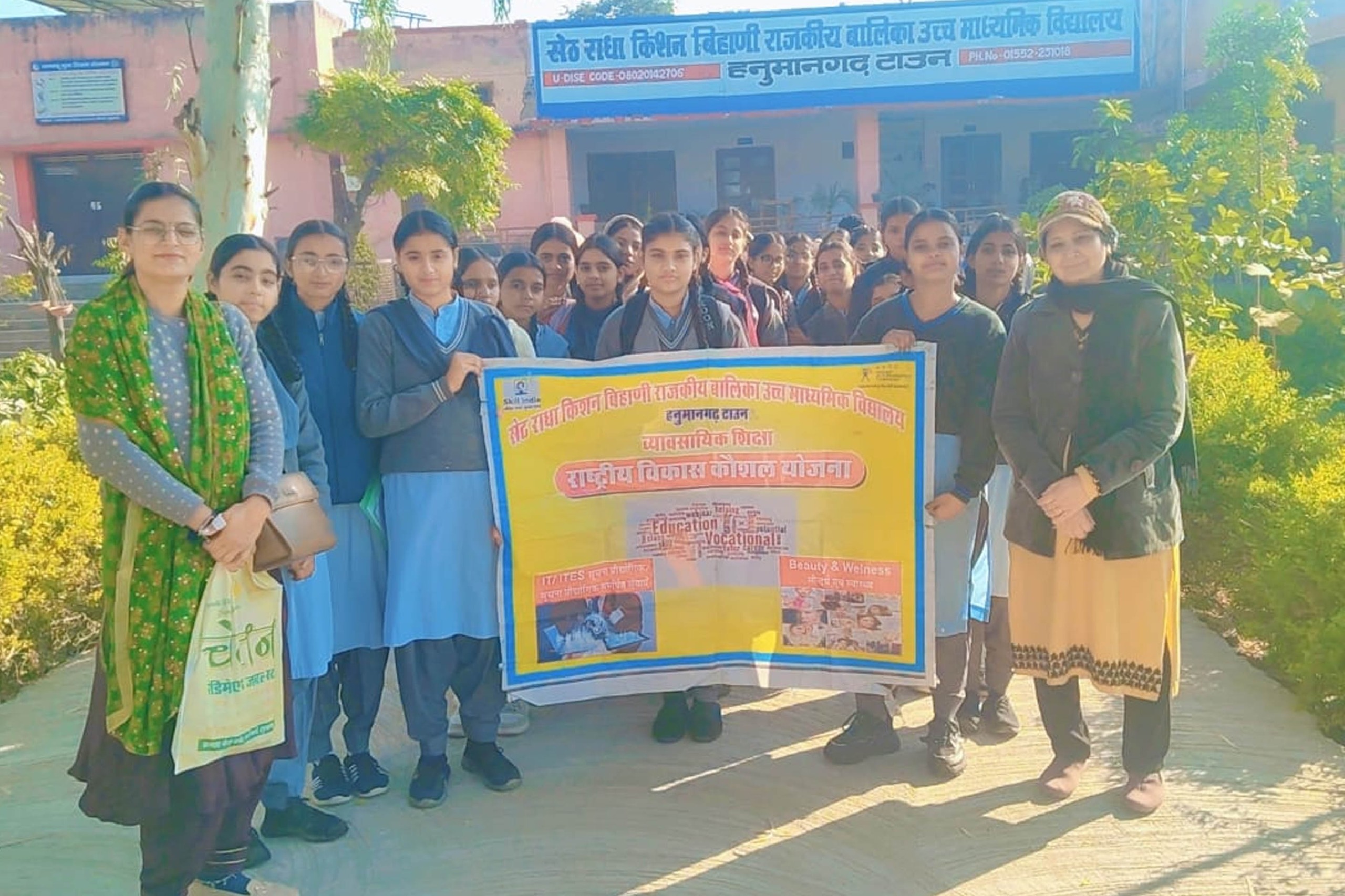 हनुमानगढ़। सेठ राधा कृष्ण बिहानी राजकीय बालिका उच्च माध्यमिक विद्यालय, हनुमानगढ़ टाउन में व्यावसायिक शिक्षा के अंतर्गत आयोजित 10 दिवसीय ऑन जॉब ट्रेनिंग (OJT) शिविर का सफलतापूर्वक आयोजन किया गया। शिविर में आईटी/आईटीईएस तथा ब्यूटी एंड वेलनेस ट्रेड की कक्षा 11 व 12 की छात्राओं ने उत्साहपूर्वक भाग लिया। इस प्रशिक्षण शिविर का आयोजन कौशल मित्र एवं व्याख्याता सुमन रानी के मार्गदर्शन में किया गया।