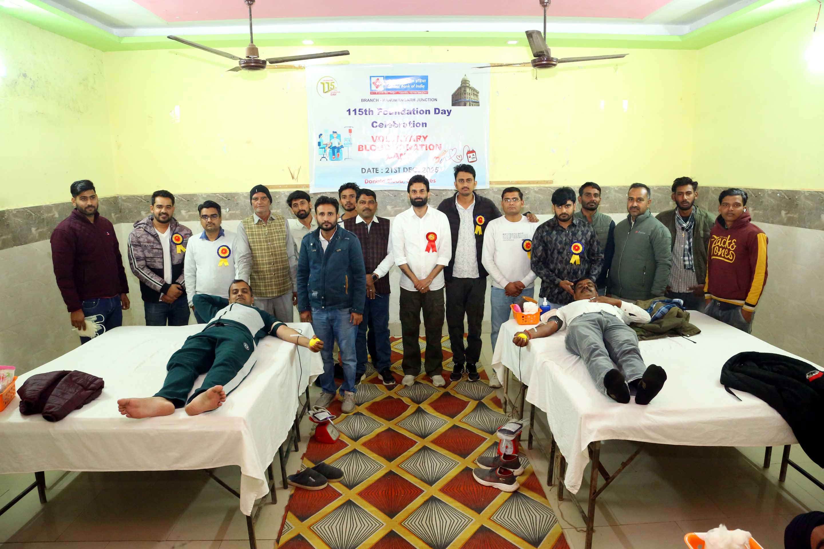 हनुमानगढ़। सेंट्रल बैंक ऑफ़ इंडिया के 115वें स्थापना दिवस के अवसर पर रविवार को जाट धर्मशाला, हनुमानगढ़ जंक्शन में स्वैच्छिक रक्तदान शिविर का आयोजन किया गया। शिविर में कुल 115 रक्तदाताओं ने उत्साहपूर्वक रक्तदान कर मानव सेवा का संदेश दिया। “रक्तदान महादान” की भावना के साथ आयोजित इस कार्यक्रम में बैंक अधिकारियों, कर्मचारियों और शहर के गणमान्य नागरिकों की सक्रिय भागीदारी रही।