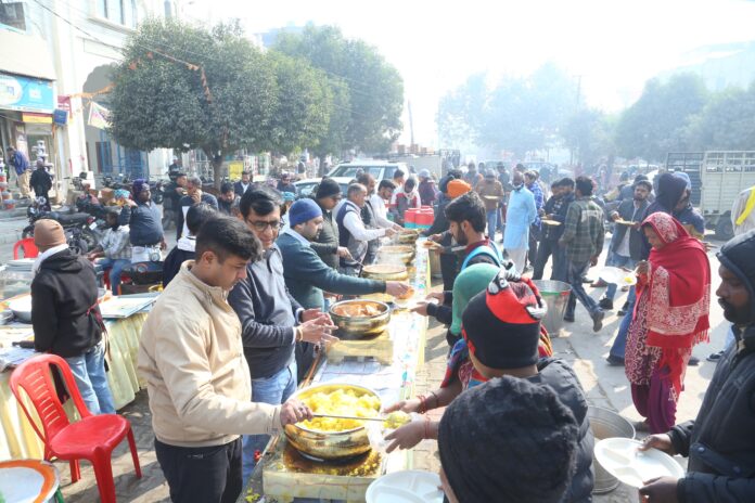 आयोजकों ने जानकारी देते हुए बताया कि मकर संक्रांति जैसे पावन पर्व पर भंडारे का आयोजन करने की परंपरा वर्षों से चली आ रही है। उन्होंने कहा कि इस आयोजन का मुख्य उद्देश्य क्षेत्र की सुख-समृद्धि, खुशहाली एवं शांति की कामना करना है। समस्त दुकानदार आपसी सहयोग से इस सेवा कार्य को संपन्न करते हैं, जिससे समाज में सेवा और भाईचारे का संदेश जाता है। भंडारे में सभी वर्गों के लोगों ने बिना किसी भेदभाव के प्रसाद ग्रहण किया। आयोजन के दौरान स्वच्छता एवं व्यवस्था का विशेष ध्यान रखा गया, जिससे कार्यक्रम शांतिपूर्ण एवं सुव्यवस्थित रूप से संपन्न हुआ।