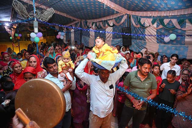 इस अवसर पर आज के यजमान सीताराम पाल रहे। कथा वाचन अजय कृष्ण शास्त्री द्वारा किया गया, जिन्होंने भगवान श्रीकृष्ण के जन्म प्रसंग का जीवंत और भावपूर्ण वर्णन प्रस्तुत किया। विजय शास्त्री ने मधुर भजनों के माध्यम से माहौल को और भी भक्तिमय बना दिया। कथा श्रवण के दौरान उपस्थित श्रद्धालु भावविभोर हो गए और “जय श्रीकृष्ण” के उद्घोष से पूरा पांडाल गूंज उठा।