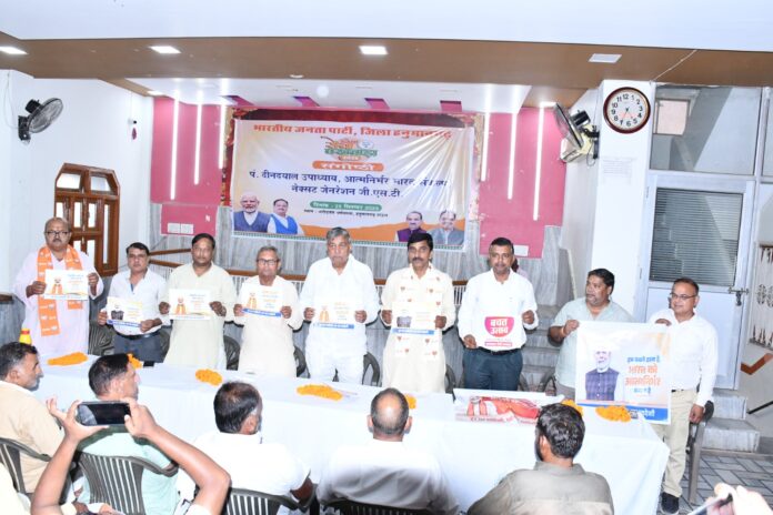 हनुमानगढ़। भारतीय जनता पार्टी हनुमानगढ़ द्वारा सेवा पखवाड़े के अंतर्गत शुक्रवार को श्री अरोड़वंश धर्मशाला, हनुमानगढ़ टाउन में एक विचार संगोष्ठी का आयोजन किया गया। संगोष्ठी का विषय “पंडित दीनदयाल उपाध्याय, आत्मनिर्भर भारत संकल्प और जीएसटी नेक्स्ट जेनरेशन” रखा गया। कार्यक्रम में बड़ी संख्या में कार्यकर्ता व गणमान्य नागरिक उपस्थित रहे।