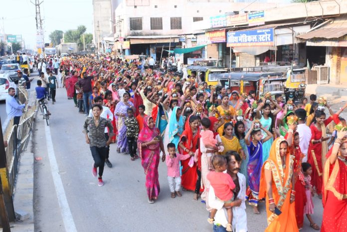 हनुमानगढ़। श्री दुर्गा पुजा समिति द्वारा आयोजित 17 वां श्रीदुर्गा पूजा महोत्सव का आगाज रविवार को भव्य शोभायात्रा के साथ हुआ। शोभायात्रा से पूर्व मुख्य यजमान उमाशंकर शर्मा आयुक्त विशेष योग्यजन (राज्यमंत्री),कार्यक्रम के अध्यक्ष नगरपरिषद सभापति गणेशराज बंसल,विशिष्ठ अतिथि रमेश काठपाल सचिव अरोड.वंश सभा,विक्रम सिंह शेखावत समाज कल्याण अधिकारी,प्रेम पारीक,मनोज शर्मा, कामरेड़ रघुवीर वर्मा, बहादुर सिंह चौहान द्वारा संयुक्त रूप से पूजा अर्चना के साथ 551 कलश कि शोभायात्रा को हरी झण्डी दिखाकर रवाना किया गया। आयोजाकों ने बताया कि शोभायात्रा महावीर दल धर्मशाला से शुरू होकर शहर के मुख्य मुख्य मार्गाे से होती हुई आयोजन स्थल पर समपन्न होई । उन्होने बताया कि नवरात्रा स्थापना पर कल सोमवार को सुबह घट स्थापना होगी और रोजाना सुबह शाम माता की आरती की जायेगी। उन्होने बताया कि समिति द्वारा पिछले 16 वर्षाे से दुर्गा पूजा महोत्सव मनाया जा रहा है.