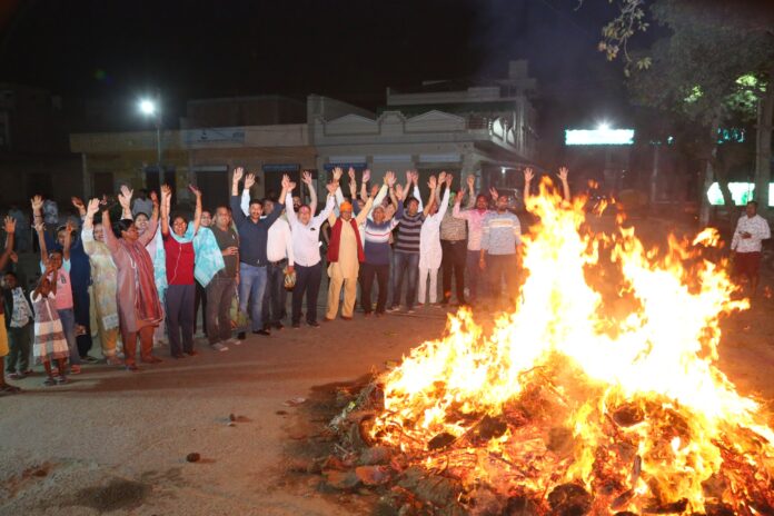 हनुमानगढ़। श्री नवदुर्गा युवा सेवा समिति द्वारा होलिका महोत्सव का भव्य आयोजन जंक्शन धानमंडी स्थित श्री नवदुर्गा मंदिर में धूमधाम से संपन्न हुआ। इस अवसर पर बड़ी संख्या में श्रद्धालु उपस्थित रहे और उत्साहपूर्वक होली महोत्सव में भाग लिया।