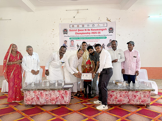 गुरु रविदास मंदिर प्रांगण में जिला क्वानकिडो चैम्पियनशिप 2025-26 का आयोजन धूमधाम से सम्पन्न हुआ। उद्घाटन लोकप्रिय विधायक गणेश राज बंसल, स्वाभिमान जन जागृति एकता मंच के प्रदेश अध्यक्ष नारायण नायक एवं राजस्थान स्टेट क्वानकिडो के स्टेट टेक्निकल डायरेक्टर धनंजय सारस्वत ने किया। जिला स्तरीय प्रतियोगिता में 11 स्कूलों और 8 अकादमियों से जुड़े 120 से अधिक बालक-बालिकाओं ने भाग लिया और विभिन्न आयु वर्ग—सब-जूनियर, केडेट, जूनियर एवं सीनियर—सहित अलग-अलग भार वर्ग में स्पारिंग व क्वान्स इवेंट्स में अपने कौशल का प्रदर्शन किया।