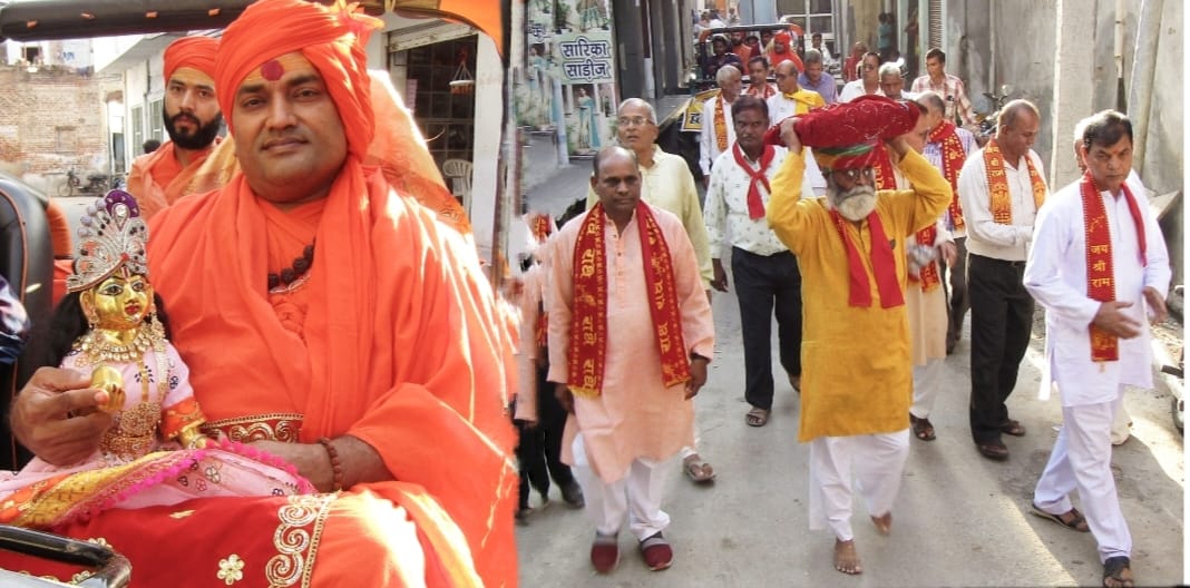 संवाददाता शाहपुरा शाहपुरा भीलवाड़ा धर्म एवं बलिदान की नगरी भक्ति और शक्ति की धारा शाहपुरा नगर मैं नवरात्रि के अवसर पर रामचरित मानस मंडल के तत्वाधान में 9 दिन तक रामचरितमानस का पाठ एवं राम कथा का आयोजन होगा जानकारी के अनुसार शाहपुरा कस्बे के सदर बाजार बागा बावडी पर माहेश्वरी पंचायत भवन में नवरात्रि के अवसर पर मानस महोत्सव मनाया जाएगा जिसमें भगवान श्री राम कथा एवं रामचरितमानस का संगीत में पाठ शकरगढ़ के महेंद्र चैतन्य एवं नारायण चैतन्य द्वारा रामचरितमानस का पाठ होगा एवं दयानंद सरस्वती महाराज द्वारा संगीतमय राम कथा धर्मा अनुसार की जाएगी नवरात्रि से पूर्व आज नया बाजार स्थित रामचरित मानस मंडल द्वारा रामचरितमानस एवं रामायण की पुस्तक के साथ भगवान राम की मूर्ति की कलश शोभायात्रा गाजे-बाजे एवं भगवान के जयकारों के साथ सैकड़ों भक्तों एवं श्रद्धालुओं ने पुष्प वर्षा के मध्य निकाली जो नया बाजार स्थित मानस मंडल से कोठार मोहल्ला बालाजी की छतरी होते हुए सदर बाजार स्थित माहेश्वरी पंचायत भवन पहुंची
