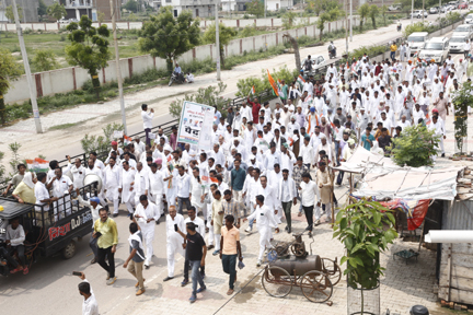 हनुमानगढ़। राजस्थान प्रदेश कांग्रेस कमेटी के आह्वान पर जिला कांग्रेस कमेटी हनुमानगढ़ अध्यक्ष सुरेंद्र दादरी के नेतृत्व में आज राष्ट्रपति महोदया के नाम जिला कलेक्टर हनुमानगढ़ को ज्ञापन सौंपा गया।  इसके लिए सैकड़ों कांग्रेस कार्यकर्ता अग्रसेन भवन से रवाना होकर पैदल मार्च करते हुए जिला कलेक्टर ऑफिस पहुंचे तथा ज्ञापन दिया। ज्ञापन में मणिपुर में महिलाओं आदिवासियों, अल्पसंख्यकों  पर हो रहे अत्याचार को रोकने में विफल रही केंद्र की भाजपा सरकार के विरुद्ध अविलंब कार्रवाई करते हुए बर्खास्तगी की मांग की गई।