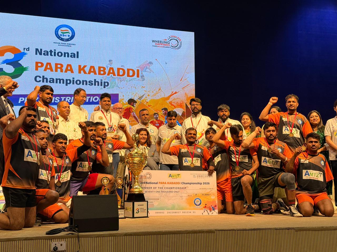 हनुमानगढ़। विशाखापटनम के मेडटैक ज़ोन में आयोजित तीसरी नेशनल पैरा कबड्डी चैंपियनशिप में राजस्थान टीम ने इतिहास रचते हुए फ़ाइनल मुकाबले में हिमाचल प्रदेश को 43–32 से हराकर स्वर्ण पदक अपने नाम कर लिया। पूरे टूर्नामेंट में अपराजेय रहते हुए राजस्थान ने लगातार सात मुकाबले जीतकर पहली बार नेशनल स्तर पर गोल्ड मेडल हासिल किया। इस प्रतिष्ठित राष्ट्रीय प्रतियोगिता में देशभर की 20 राज्यों की टीमों ने भाग लिया, जिससे टूर्नामेंट का स्तर और प्रतिस्पर्धा बेहद ऊँचा रहा। लीग चरण से लेकर नॉकआउट मुकाबलों तक राजस्थान ने हर मैच में दमदार खेल दिखाते हुए एक भी हार दर्ज नहीं की।