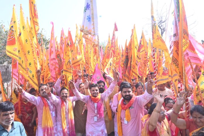 हनुमानगढ़। श्री खाटू श्याम दीवाने मंडल द्वारा फाल्गुन महोत्सव की आठवी भव्य अरदास निशान यात्रा शुक्रवार को फाल्गुन सुदी ग्यारस पर जंक्शन की दुर्गा मंदिर में हारे के सहारे बाबा श्याम की विधिवत पूजा-अर्चना के साथ रवाना की गई। शोभायात्रा में भारी संख्या में महिलाओं, पुरुषों एवं युवाओं ने उत्साह से भाग लिया। शोभायात्रा दुर्गा मंदिर धर्मशाला से आरंभ होकर शहर के मुख्य मुख्य मार्गाे से होती हुई टाउन जंक्शन रोड स्थित श्री बांके बिहारी मंदिर में संपन्न हुई। शोभायात्रा में भाजपा नेता अमित चौधरी एवं हिमांशु महर्षि ने शिरकत की। श्री श्याम दीवाने मंडल के सदस्य व श्रद्धालु सुंदर-सुंदर भजनों पर झूमते हुए पूरे शहर में भव्य शोभायात्रा निकाली और सारे रास्ते बाबा श्याम के जयकारों के साथ शहर को भक्तिरसमय कर दिया। श्री श्याम दीवाने मंडल के सदस्यों ने बताया कि जैसे खाटू धाम मन्दिर पर सूरजगढ़ निशान चढ़ाता है उसी जज्बे के साथ मंडल के सभी सदस्यों ने हर फागुन एकादशी पर बांके बिहारी मंदिर हनुमानगढ़ जंक्शन में हर साल निशान लगाने का जिम्मा लिया है जिसके तहत यह आठवी निशान ध्वजा यात्रा निकाली गई है। भव्य शोभायात्रा में विशेष आकर्षण का केंद्र बाबा श्याम का भव्य एवं अकर्षित दरबार, सूंदर सूंदर झांकिया, फूलों की होली एवं इत्र वर्षा रही। शोभायात्रा में निशान उठाने वाले श्रद्धालुओं को टोकन पर्ची दी गई जिसकी लॉटरी के माध्यम से इलेक्ट्रिक स्कूटी एवं अन्य उपहार निकल जाएंगे। इस मौके पर अध्यक्ष पवन वाट्स, सचिव लोकेश सहगल, कोषाध्यक्ष संजीव अग्रवाल, महासचिव लक्की जुनेजा, मनोज अग्रवाल, नरेश गोयल, प्रवीण सोनी, केशवानंद चुघ, मुकेश भदरा सहित अन्य सदस्य उपस्थित रहे।