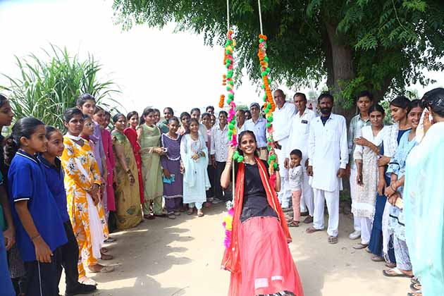 इस मौके पर कॉलेज के प्रांगण में खेतों जैसी प्राकृतिक छवि साकार करते हुए पेड़ों पर रस्सियों से झूले बांधे गए। छात्राओं ने पारंपरिक तीज गीत गाते हुए झूलों का भरपूर आनंद लिया। उनके पारंपरिक परिधान, उत्साह और लोकगीतों ने कार्यक्रम में चार चांद लगा दिए। छात्राओं ने मेहंदी प्रतियोगिता में अपनी कलात्मक प्रतिभा का शानदार प्रदर्शन किया, वहीं विभिन्न प्रकार की फन गेम्स ने आयोजन को और भी रोमांचक बना दिया।