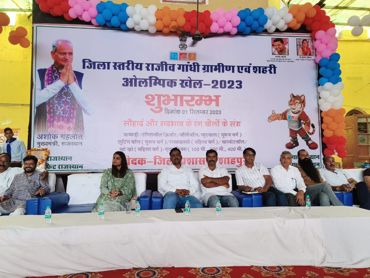 शाहपुरा जिला मुख्यालय पर मुख्यमंत्री अशोक गहलोत द्वारा की गई बजट घोषणा 2023-24 की अनुपालना में ग्रामीण एवं शहरी स्तर पर खेल प्रतिभाओं की खोज कर आगे लाने के उद्देश्य से राजीव गांधी ग्रामीण एवं शहरी ओलम्पिक खेलों का जिला स्तरीय उद्घाटन शनिवार को राजकीय उच्च माध्यमिक विद्यालय में जिला कलेक्टर डॉ मंजू चौधरी ने किया शाहपुरा, बनेड़ा, जहाजपुर एवं कोटड़ी की कुल 61 टीमें भाग लेंगीं जिसमे 30 महिला टीमें व 31पुरुष टीमें शामिल होंगी। उन्होंने बताया कि जिला स्तरीय प्रतियोगिता में कुल 655 खिलाड़ी जिसमें 322 महिलाएं व 333 पुरूष खिलाड़ी भाग लेंगें। उन्होंने बताया कि ग्रामीण व शहरी क्षेत्र में कबड्डी, फुटबॉल, टेनिस बॉल, क्रिकेट, वॉलीबॉल, शूटिंग बॉल ,बास्केट बॉल ,खोखो एवं रस्सा कशी खेलों की प्रतियोगिताएं आयोजित होगी।