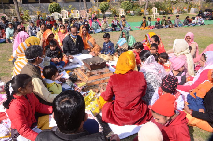 हनुमानगढ़। बसंत पंचमी 5 जनवरी 2022 स्थानीय आदर्श विद्या मंदिर माध्यमिक ( विद्या भारती विद्यालय ) में बसंत पंचमी ( सरस्वती जयंती ) के अवसर पर विद्यारंभ संस्कार विधि विधान से करवाया गया । 3 से 5 वर्ष के आयु ग्रुप के 108 छात्र छात्राओं ने यज्ञ के समक्ष विद्यारंभ संस्कार संपन्न किया । छात्र.छात्राएं पीला वस्त्र धारण करके व कोरोना गाइडलाइन को ध्यान में रखते हुए पाटी पूजन व स्वस्ति लेखन का विधि विधान से लेख लिखा व ओम उच्चारण कर माता.पिता के साथ यज्ञ में आहुति दी । इस अवसर पर जिला संरक्षक कृष्ण लाल शर्मा व्यवस्थापक मुरलीधर सोनी कोषाध्यक्ष अशोक गर्ग व समिति सदस्यों ने नौनिहालों को आशीर्वाद प्रदान किया। यज्ञ वैदिक रीति से आनंद मोहन शर्मा मंडल अध्यक्ष आर्य समाज, बहन पुष्पा सोखल, बहन वंदना आर्य व शरतचंद्र आर्य ने संपन्न कराया । शाला प्रधान गंगाधर शर्मा ने आए हुए अभिभावकों व छोटे छोटे बालकों का आभार व्यक्त किया । नई शिक्षा नीति के अनुसार शिशु वाटिका पद्धति की 12 व्यवस्थाओं का अभिभावकों ने अवलोकन किया । शिशु वाटिका प्रभारी सीमा बजाज व सह प्रभारी पूनम व पूजा ने व्यवस्थाओं का अवलोकन करवाया। विद्यालय साज सज्जा आचार्या प्रियंका अरोड़ा, पुष्पा चुघ, मनोरमा पारीक, गीता शर्मा ने की पूरा विद्यालय पीले रंग मे नजर आया । रंगोली सज्जा प्रदीप शर्मा, आशा जी, सरोज चावला, चंचल, प्रवीन लता ने की। यज्ञशाला अरविंद कुमार सुथार सपत्नी बैठे । मंच का संचालन हैप्पी सांवक ने किया । प्रसाद व्यवस्था मनीष कुमार ने की ।