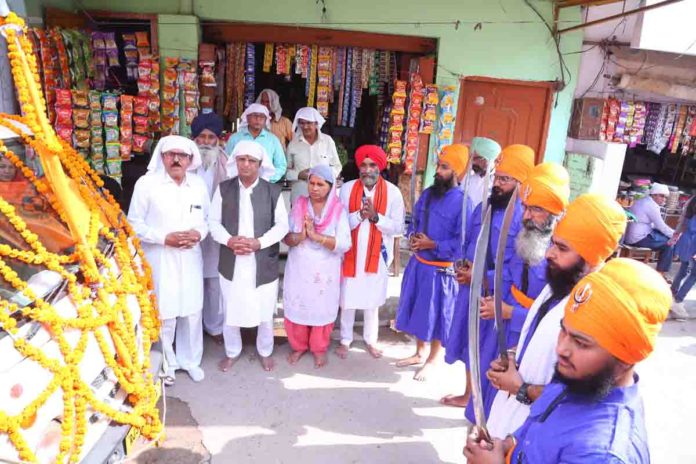 हनुमानगढ़। श्री गुरुनानक जयंती के अवसर पर सर्व समाज द्वारा सिख समाज के प्रथम गुरू नानक देव की जयंती और 554 वां प्रकाश पर्व के उपलक्ष में श्रीअखण्ड पाठ के भोग के पश्चात विशाल नगरकीर्तन निकाला गया। नगरकीर्तन से पूर्व श्रीअखण्ड पाठ के भोग के पश्चात गुरूद्वारा प्रबंधक समिति के सदस्यों द्वारा नगर में हुए विकास कार्याे को देखते हुए नगरपरिषद सभापति गणेशराज बंसल, पार्षद गुरदीप सिंह बराड़ बब्बी, पार्षद नगीना बाई का सरोपा पहनाकर अभिनंदन किया। शहर की सुख स्मृद्धि व खुशहाली की अरदास के पश्चात नगरकीर्तन पंज प्यारों की अगुवाई में रवाना हुआ। नगरकीर्तन में गुरुद्वारा लंगर हॉल निर्माण के लिए सभापति गणेशराज बंसल ने 51 हजार, पार्षद गुरदीप बराड़ बब्बी ने 21 हजार व पार्षद नगीना बाई ने 11 हजार का सहयोग किया।