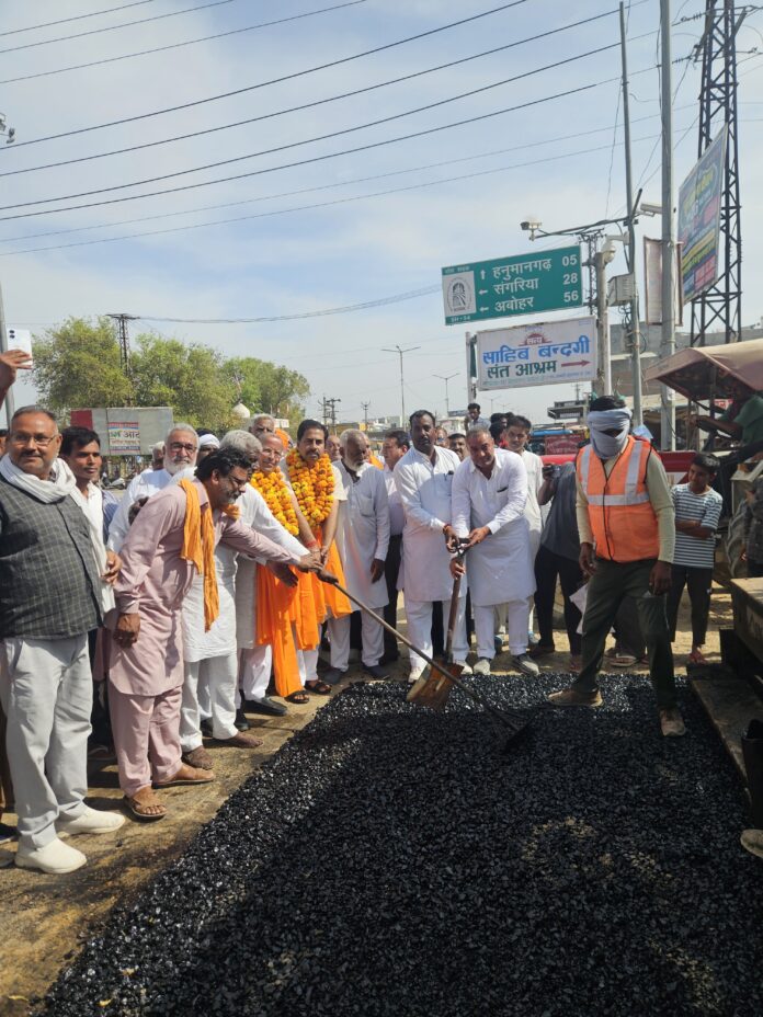 हनुमानगढ़। शहर की 2 केएनजे आबादी क्षेत्र में शुक्रवार को कारपेट सड़क निर्माण कार्य का शुभारंभ किया गया। यह सड़क पुरानी चुंगी नंबर 8 से आरयूबी तक बनाई जाएगी। इस निर्माण कार्य का शुभारंभ विधायक गणेशराज बंसल और निवर्तमान सभापति सुमित रणवा द्वारा किया गया।