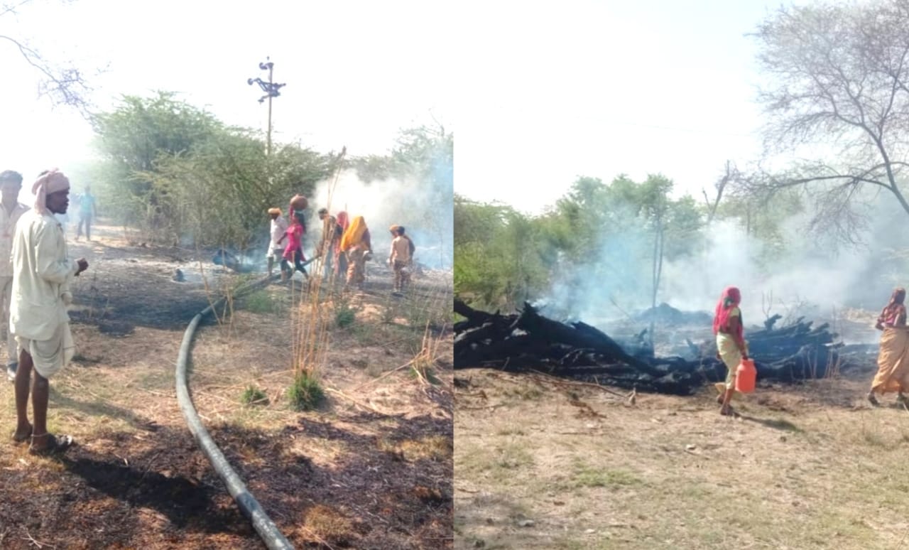 गेहूं की फसल में शॉर्ट सर्किट से आग लगी ढाई घंटे बाद भी नहीं पहुंचे फायर ब्रिगेड एवं पानी के टैंकर