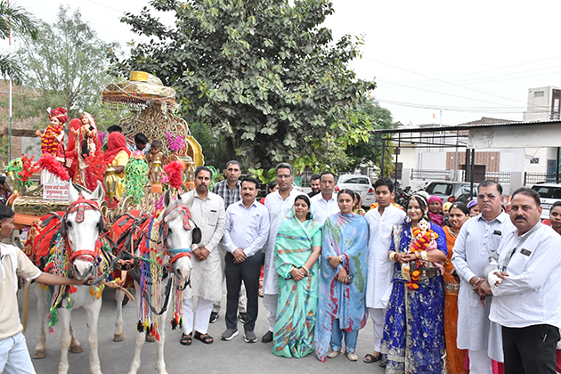 हनुमानगढ़। शनिवार को नगरपरिषद हनुमानगढ़ द्वारा हर वर्ष की भांति इस वर्ष भी गणगौर उत्सव बड़ी धूमधाम से मनाया गया। इस अवसर पर विधायक गणेशराज बंसल,पूर्व सभापति सुमित रणवां,आयुक्त सुरेन्द्र सिंह यादव,पूर्व पार्षद मुकेश भार्गव,ऑचल फुटेला, मुख्य सफाई निरीक्षक प्रेमलता पुरी,रमनदीप कौर, जगदीश सिराव, करणी सिंह, विक्रम कुमार, सुन्दर बंसल, व अन्य गणमान्य नागरिकों ने ईसर व गणगौर की विधिवत पूजा अर्चना पण्डित संजय पारीक द्वारा विधिवत पूजा अर्चना कर कार्यक्रम का शुभारम्भ किया। इसके पश्चात् गणगौर की शोभा यात्रा निकाली गई। जगदीश सिराव ने बताया कि यह शोभायात्रा नगर परिषद कार्यालय से शुरू होकर भटनेर दुर्ग पर पहुंची जहां पर शहर की महिलाओं द्वारा पूजा कि गई । इस के पश्चात शोभा यात्रा बाजार से होती हुई रामलीला रंगमंच पर पहुची जहॉ सभी के दर्शनो के लिये रखी गई । गणगौर कि शोभा यात्रा शाही अन्नदाज से बग्धी पर सवार कर बैण्ड बाजो के साथ ऊटों व घोड़ो पर सवार राजस्थानी वेशभूषा में सुसर्जित सवार बैठे थे । भटनेर दुर्ग पर भारी संख्या में महिलाओं ने ईसर गौर कि पुजा अर्चना की । विधायक गणेशराज बंसल व आयुक्त सुरेन्द्र सिंह यादव ने बताया कि गणगौर राजस्थान एवं सीमावर्ती मध्य प्रदेश का एक त्यौहार है जो चौत्र महीने की शुक्ल पक्ष की तीज को आता है। इस दिन कुवांरी लड़कियां एवं विवाहित महिलायें शिवजी (ईसर जी) और पार्वती जी (गौरी) की पूजा करती हैं। पूजा करते हुए दूध से पानी के छांटे देते हुए गोर गोर गोमती गीत गाती हैं। गणगौर राजस्थान में आस्था, प्रेम और पारिवारिक सौहार्द का सबसे बड़ा उत्सव है। गण (शिव) तथा गौर (पार्वती) के इस पर्व में कुँवारी लड़कियां मनपसंद वर पाने की कामना करती हैं। विवाहित महिलायें चौत्र शुक्ल तृतीया को गणगौर पूजन तथा व्रत कर अपने पति की दीर्घायु की कामना करती हैं। होलिका दहन के दूसरे दिन चौत्र कृष्ण प्रतिपदा से चौत्र शुक्ल तृतीया तक 16 दिनों तक चलने वाला त्योहार है .गणगौर। यह माना जाता है कि माता गवरजा होली के दूसरे दिन अपने पीहर आती हैं तथा बाद में ईसर ;भगवान शिव उन्हें वापस लेने के लिए आते हैं ,चौत्र शुक्ल तृतीया को उनकी विदाई होती है। गणगौर की पूजा में गाये जाने वाले लोकगीत इस अनूठे पर्व की आत्मा हैं। राजस्थान के कई प्रदेशों में गणगौर पूजन एक आवश्यक वैवाहिक रस्म के रूप में भी प्रचलित है। गणगौर पूजन में कन्याओं और महिलाएं अपने लिए अखंड सौभाग्य ,अपने पीहर और ससुराल की समृद्धि तथा गणगौर से हर वर्ष फिर से आने का आग्रह करती हैं । शोभायात्रा के बाद रंगमंच पर सम्पन्न हुई । रंगमंच पर सास्कृतिक नृत्य,प्रश्नोतरी का कार्यक्रम रखा गयां विजेताओं को पुरूष्कार दिये गये