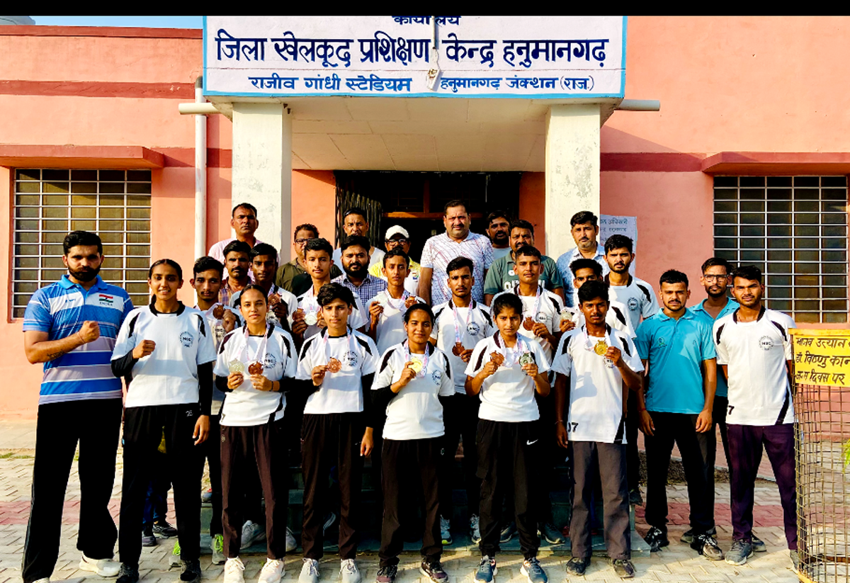 हनुमानगढ़। कोटा में आयोजित 17 वी राज्य स्तरीय जूनियर वुशु प्रतियोगिता में हनुमानगढ़ के खिलाड़ियों ने दो स्वर्ण, सात रजत एवं 9 कांस्य पदक जीते। हनुमानगढ़ वुशु संघ के अध्यक्ष देवेंद्र अग्रवाल ने बताया कि 20 से 22 जून तक आयोजित जूनियर राज्य स्तरीय वुशु प्रतियोगिता में जिले के खिलाड़ियों का शानदार प्रदर्शन रहा। खिलाड़ियों के हनुमानगढ़ पहुंचने पर राजीव गांधी स्टेडियम में जिला खेल अधिकारी शमशेर सिंह, वुशु संघ के अध्यक्ष देवेंद्र अग्रवाल, ओमप्रकाश सेन, हेमंत गोयल, राजीव चौधरी,मोहनलाल शर्मा बृजलाल, राजेश खीचड़, सिमरणजीत सिंह लेघा, विकास शर्मा, पदम सिंह, अक्षय ज्याणी, भुर सिह आदि ने खिलाड़ियों का सम्मान किया। वुशु कोच शंकर सिंह नरूका ने बताया कि स्वर्ण पदक विजेता खिलाड़ी पटना में आयोजित होने वाली राष्ट्रीय प्रतियोगिता में भाग लेंगे। जिला खेल अधिकारी शमशेर सिंह ने बताया कि राजीव गांधी स्टेडियम में करीब 140 वुशु के खिलाड़ी सुबह शाम अभ्यास कर रहे हैं एवं निरंतर रूप से राज्य एवं राष्ट्रीय प्रतियोगिता में उत्कृष्ट प्रदर्शन कर रहे हैं जो जिले के लिए गौरव की बात है।