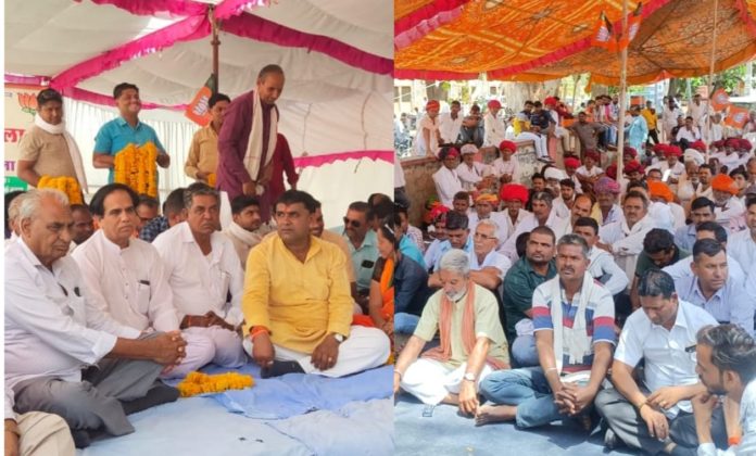 संवाददाता शाहपुरा। आसींद- हुरड़ा विधायक जबर सिंह सांखला ने जिला कलेक्टर भीलवाड़ा को दिए गए ज्ञापन की समय अवधि 7 दिवस पूर्ण होने पर उपखंड कार्यालय के बाहर क्षेत्र की जनता के साथ धरने पर बैठे व मांगे पूरी नहीं होने तक विधायक सांखला अनिश्चितकालीन धरने पर बैठे रहेंगे। विधायक प्रतिनिधि अनिल सिंह तंवर ने बताया कि सोमवार को क्षेत्रीय विधायक जब्बर सिंह सांखला ने भारतीय जनता पार्टी के नेतृत्व में अनिश्चितकालीन धरना प्रारंभ किया। जिसमें आसींद हुरडा विधानसभा क्षेत्र की हजारों की संख्या में आमजन धरने में सम्मिलित हुवे। धरने पर भाजपा के जिला एवं विधानसभा के कार्यकर्ता एवं पदाधिकारी उपस्थित रहे। क्षेत्रीय विधायक सांखला ने विधानसभा आसींद हुरड़ा की विभिन्न जनसमस्याओं को लेकर राज्य सरकार तथा विधानसभा सत्र में क्षेत्र की जन समस्याओं को पटक पर रखकर समस्या से अवगत करा चुके हैं तथा जिला प्रशासन को भी विगत 11 अप्रैल को जिला कलेक्टर महोदय से वार्ता कर डीएमफटी फंड से क्षेत्र की समस्याओं के निदान की मांग कर चुके हैं । प्रशासन ने डीएमएफटी फंड के स्वीकृत कार्यो का भी कोई समाधान नहीं किया है । इस बात को लेकर 18 अप्रैल को आसींद उपखंड कार्यालय के बाहर विधायक सांखला धरने पर क्षेत्र की मुख्य मांगों को मनवाने के लिए बैठे है। उन्होंने सरकार खुली चेतावनी देते हुए कहा कि मैं अपने निर्णय पर अडिग हुं। चाहे इसका परिणाम कुछ भी हो जनता के हित में जनता की वाजिब मांगों को लेकर अगर मुझे पत्नी एवं बच्चो सहित परिवार के साथ धरने पर बैठना पड़ा तो भी बैठूंगा। धरने कार्यक्रम को भीलवाड़ा विधायक विट्ठल शंकर अवस्थी ने क्षेत्रवासियों को संबोधित करते हुए कहा कि यह सरकार जनविरोधी सरकार है यह सरकार केवल व्यक्ति विशेष समुदाय को खुश करने के लिए कार्य कर रही है तथा इनके प्रशासनिक अधिकारी इन के दबाव में आकर उनके कहे अनुसार कार्य कर रहे हैं जिससे क्षेत्र की जनता काफी परेशानियों एवं भेदभाव किया जा रहा है। जिससे क्षेत्र की जनता इसका जवाब आने वाले विधानसभा चुनाव में देगी। पालिका चेयरमैन देवीलाल साहू ने संबोधित करते हुए कहा कि राज्य सरकार ने किसानों के साथ युवाओं के साथ महिलाओं के साथ भेद भाव क्या है एवं केवल जुमला दिखाने का कार्य किया है। धरने को जिला उपाध्यक्ष गोविन्द सिंह चुण्डावत, जिला मंत्री गोपाल सिंह चुण्डावत, भाजपा नगर अध्यक्ष सत्य नारायण छिपा, सरेडी मंडल अध्यक्ष भगवती प्रसाद शर्मा, गुलाबपुरा मंडल अध्यक्ष सांवर नाथ योगी, एवं नगर पालिका उपाध्यक्ष विक्रम सिंह चुंडावत , पुर्व जिला प्रमुख रामचन्द्र सेन, पुर्व प्रधान चन्दवीर सिंह, जिला परिषद सदस्य अशोक तलाईच, रामलाल खटीक, पुर्व जिला उपाध्यक्ष तेजवीर सिंह चुण्डाव
