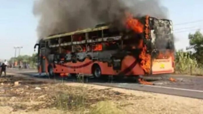 राजस्थान के जैसलमेर में जैसलमेर-जोधपुर हाईवे (Jaisalmer Jodhpur Bus Fire) मंगलवार दोपहर 3.30 बजे चलती एसी स्लीपर बस में आग लग गई। 20 यात्रियों की जिंदा जलने से मौत हो गई। जानकारी के अनुसार, बस दोपहर करीब 3 बजे जैसलमेर से जोधपुर के लिए रवाना हुई थी।