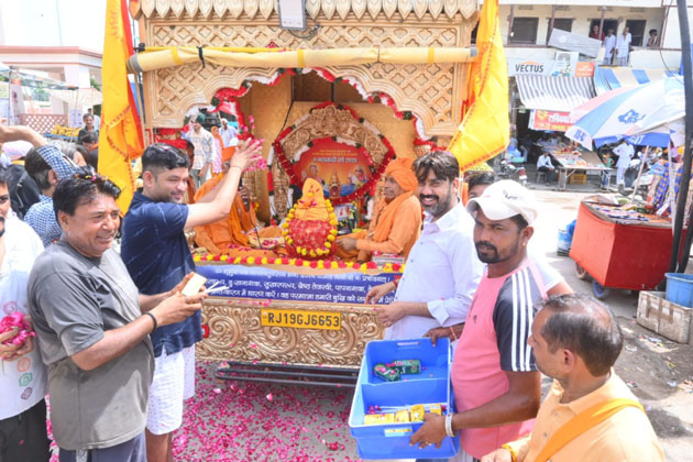 इस अवसर पर नरेश पुरोहित एवं गोपाल शर्मा शेरू के नेतृत्व में भव्य पुष्प वर्षा की गई और श्रद्धालुओं के लिए मैंगो शेक व अमरूद शेक का भंडारा लगाया गया। दुकान संचालकों व आम नागरिकों ने मिलकर यात्रा में शामिल कार्यकर्ताओं व श्रद्धालुओं को शीतल शेक वितरित कर सेवाभाव का परिचय दिया।