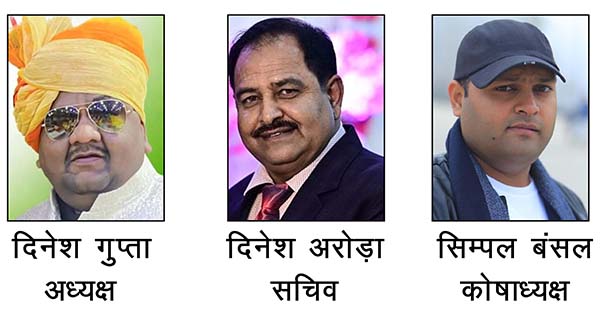 – दिनेश गुप्ता बने पुनः अध्यक्ष, दिनेश अरोड़ा सचिव और सिम्पल बंसल कोषाध्यक्ष नियुक्त