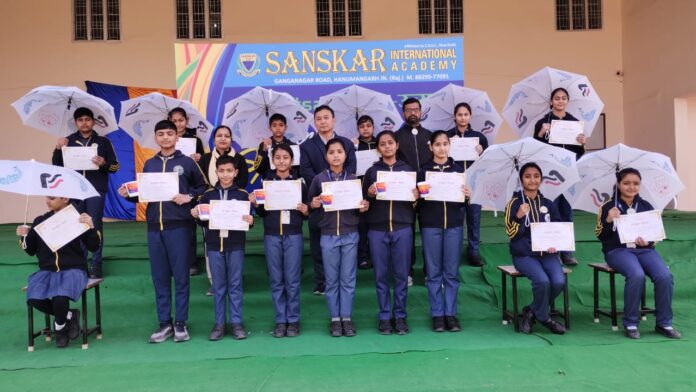हनुमानगढ़। संस्कार इंटरनेशनल एकेडमी के विद्यार्थियों ने संस्कृत दिवस पर श्लोक, निबन्ध प्रतियोगिता में उत्कृष्ट प्रदर्शन किया। संस्कार इंटरनेशनल एकेडमी, जो समग्र शिक्षा के प्रति अपनी प्रतिबद्धता के लिए जानी जाती है, गर्व से संस्कृत दिवस के उपलक्ष्य में आयोजित श्लोक और निबन्ध प्रतियोगिता में अपने छात्रों के उत्कृष्ट प्रदर्शन की घोषणा करती है। संस्कृत में भाषाई और साहित्यिक कौशल को बढ़ावा देने के लिए आयोजित प्रतियोगिता में विभिन्न कक्षाओं के छात्रों की प्रभावशाली भागीदारी देखी गई। प्राचार्य श्री एल.बी. सुब्बा ने छात्रों द्वारा प्रदर्शित असाधारण प्रतिभा पर प्रसन्नता व्यक्त की। प्रतियोगिता में सभी पदों पर अविश्वसनीय प्रतिनिधित्व के साथ कुल 15 छात्रों ने अपनी प्रतिभा का प्रदर्शन किया। परिणाम इस प्रकार हैं।