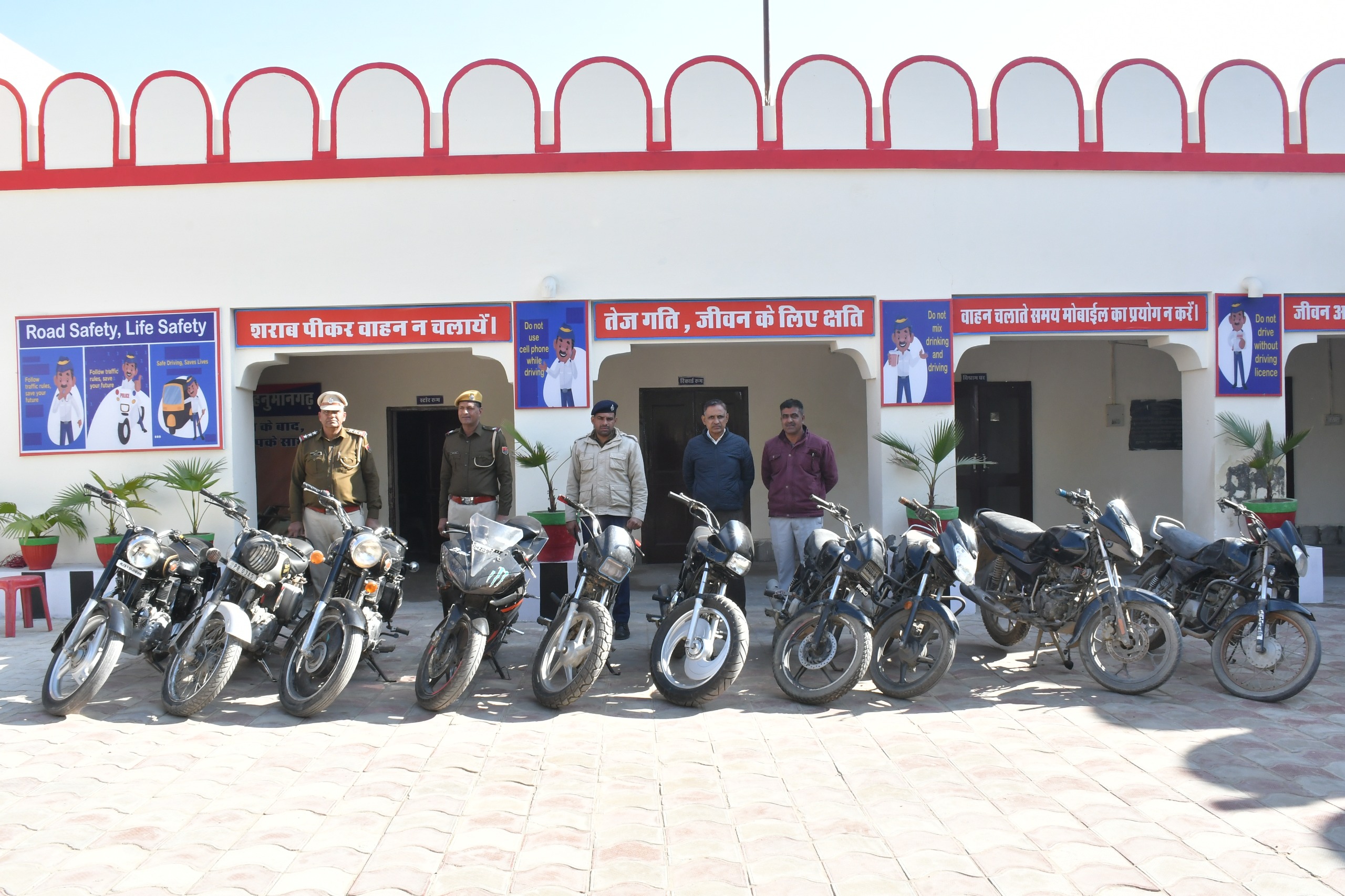 हनुमानगढ़। जिला पुलिस अधीक्षक हरीशंकर के निर्देशानुसार यातायात थाना हनुमानगढ़ द्वारा यातायात नियमों का पालन नहीं करने वाले दुपहिया वाहन चालकों के खिलाफ सख्त कार्रवाई शुरू कर दी गई है। इसी क्रम में गुरुवार को शहर के विभिन्न क्षेत्रों में विशेष अभियान चलाकर नियमों की अनदेखी करने वाले वाहन चालकों पर कार्रवाई की गई, जिससे सड़क सुरक्षा को लेकर स्पष्ट संदेश दिया गया।