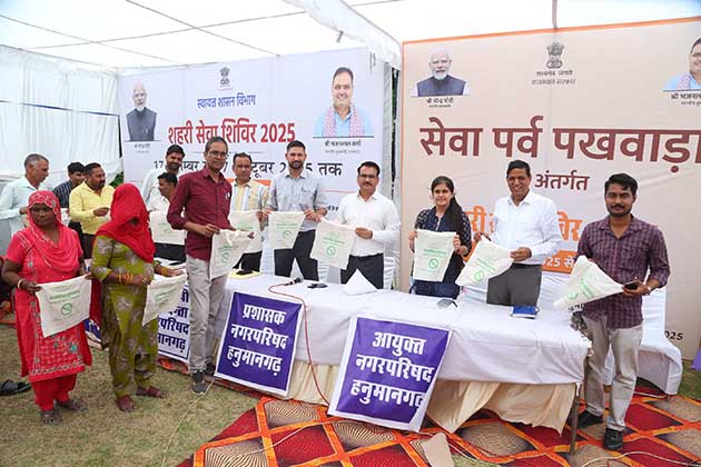 हनुमानगढ़। राज्य सरकार के निर्देशानुसार नगरपरिषद हनुमानगढ़ द्वारा चलाए जा रहे शहरी सेवा शिविर 2025 अभियान के अंतर्गत गुरुवार को विशेष शिविर का आयोजन किया गया। शिविर में आमजन की समस्याओं का मौके पर ही निपटारा किया गया। इस दौरान नगरपरिषद आयुक्त सुरेंद्र सिंह यादव सहित अन्य अधिकारियों की मौजूदगी में स्वच्छता ही सेवा अभियान 2025 के तहत स्वच्छोत्सव मनाया गया।