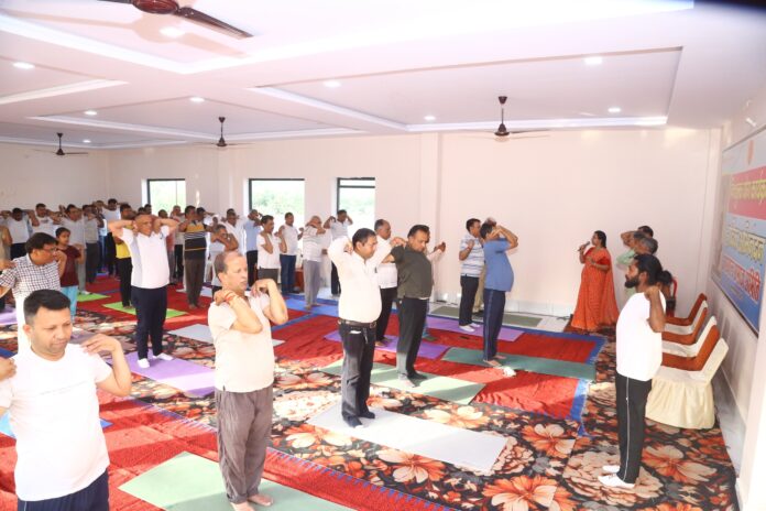 हनुमानगढ़। जंक्शन के अग्रसेन पार्क स्थित आरोग्य भवन में अग्रवाल समाज समिति हनुमानगढ़ जंक्शन द्वारा रविवार को प्रातः एक विशेष योग शिविर का आयोजन किया गया। इस शिविर में बड़ी संख्या में आमजन ने भाग लेकर योग के महत्व को समझा और स्वस्थ जीवन की दिशा में कदम बढ़ाया। कार्यक्रम में मुख्य अतिथि के रूप में विधायक गणेश बंसल उपस्थित रहे। उनके साथ नगर परिषद आयुक्त सुरेंद्र यादव, आयुर्वेद विभाग के उपनिदेशक डॉक्टर तीर्थराज शर्मा तथा आयुर्वेद चिकित्सा अधिकारी डॉक्टर आनंद बंसल ने भी कार्यक्रम में शिरकत की।