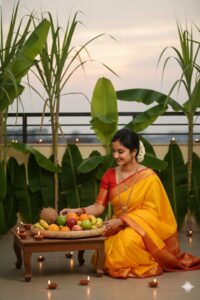 3. पूजा की तैयारी करती महिला (Preparing for Chhath Puja Prompt)